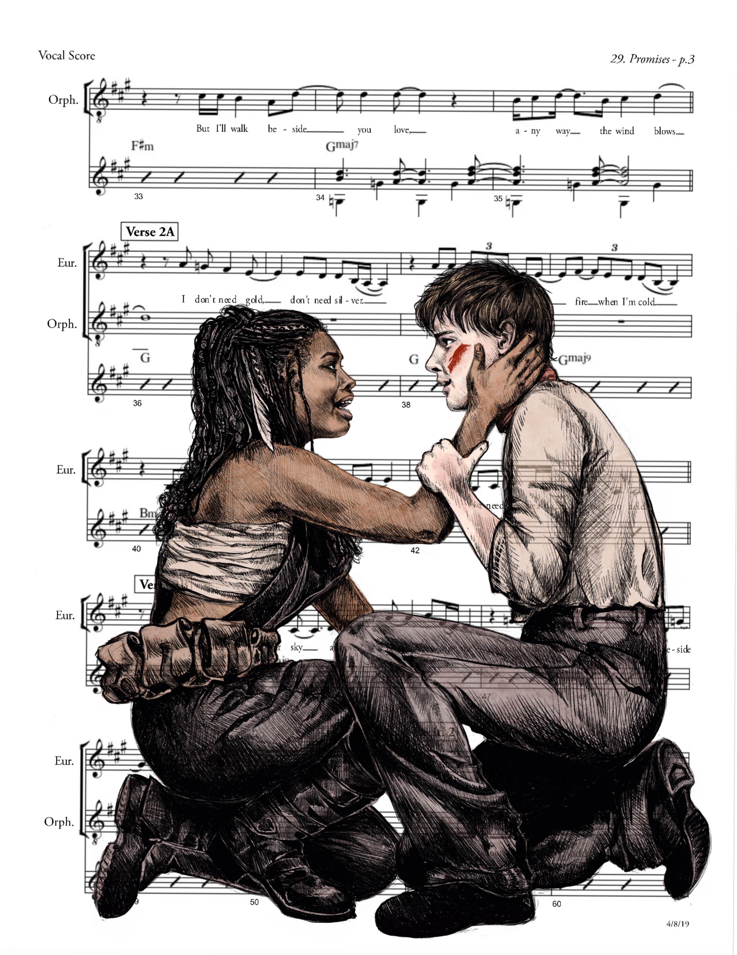 Jack Wolfe and Morgan Dudley as Orpheus and Eurydice in Hadestown